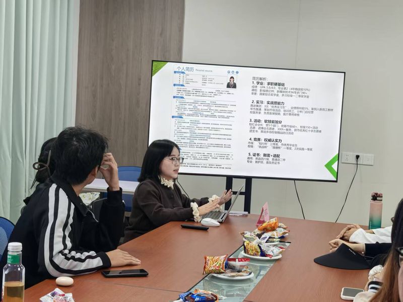 依托“朋辈引路·就业先锋分享”赋能计划,学院发挥优秀学子示范作用,邀请求职达人、就业先锋分享经验。在年级大会上,曹梦颖、崔泽斌、周由等同学围绕简历优化、面试技巧、职业定位与秋招全流程等内容,分享实战心得,将可复制的求职方法传递给同学,以榜样力量带动学生提升求职竞争力。