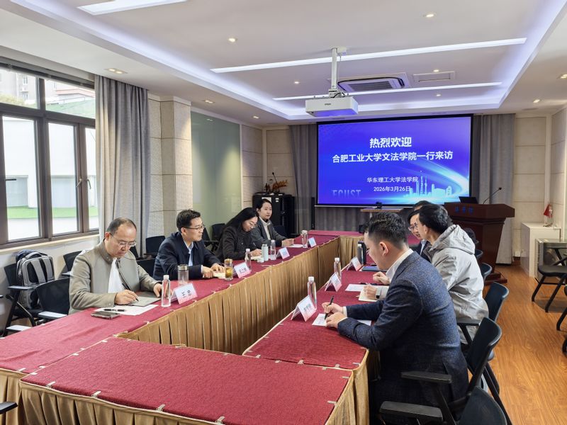王惠文对合肥工业大学文法学院一行的到访表示热烈欢迎,并从历史沿革、师资队伍、学科建设等六个方面详细介绍了华东理工大学法学院的法学教育情况。他指出,两学院在办院特色、学科建设等方面存在诸多相似之处。期待本次交流能够凝聚共识、互学互鉴,为两院未来发展提供经验参考,为双方日后进一步交流与合作奠定良好基础。