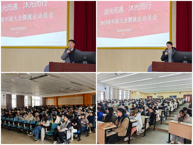 以“前置规划·精准动员”为核心,学院构建系统化就业引导体系。针对低年级侧重职业启蒙与规划,面向毕业班聚焦求职机遇把握,先后组织多场专题动员会议。会上,副院长王启要结合行业趋势与人才需求,强调学生需夯实专业基础、强化实践能力、理性规划升学就业路径;党委副书记孟庆鹏建议学生要重视实习实践,提早提升就业竞争力;辅导员周雨婷结合就业数据与校院资源,鼓励毕业生把握机遇、抢抓春招窗口期,主动求职应考。