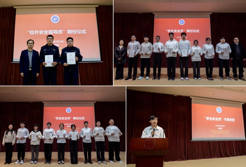 为进一步整合校内外总体国家安全观教育资源,两个学院还特别聘任曹荣和张志荣担任“校外安全指导员”,饶志雄为他们颁发了聘书。同时,两个学院还分别成立了“学生安全员”队伍,由本研班委和学生骨干组成,曹娜、胡宝林和张娅莉为学生代表颁发了聘书。资环学院本科生魏政杰代表受聘学生发言,表达了认真履职、发挥朋辈引领作用,做好知识宣传员、信息反馈员和平安校园守护者的决心和信心。