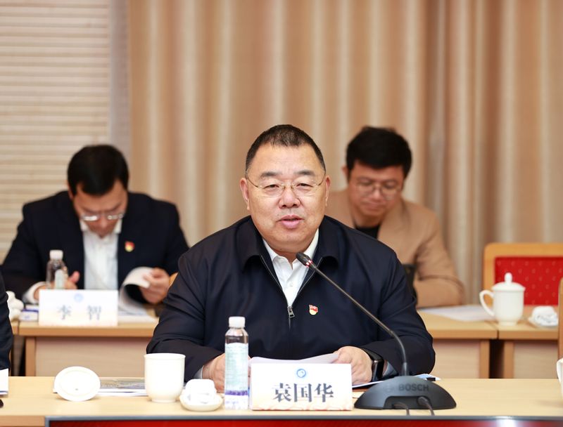图片说明:上海国投公司党委书记、董事长袁国华讲话